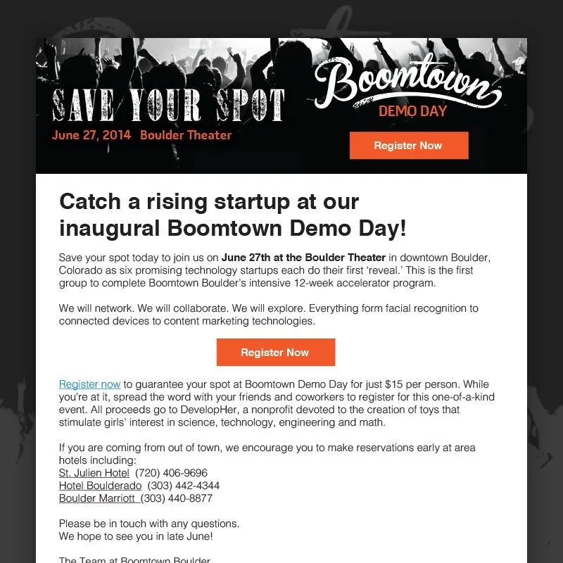 We don’t overlook the human touch when we craft email copy. Emails – especially subject lines – should have warmth and even playfulness about them. It’s important to keep things short and conversational since emails should be easy to scan. Emails with an individual as the sender also perform better than those coming from just a company name.