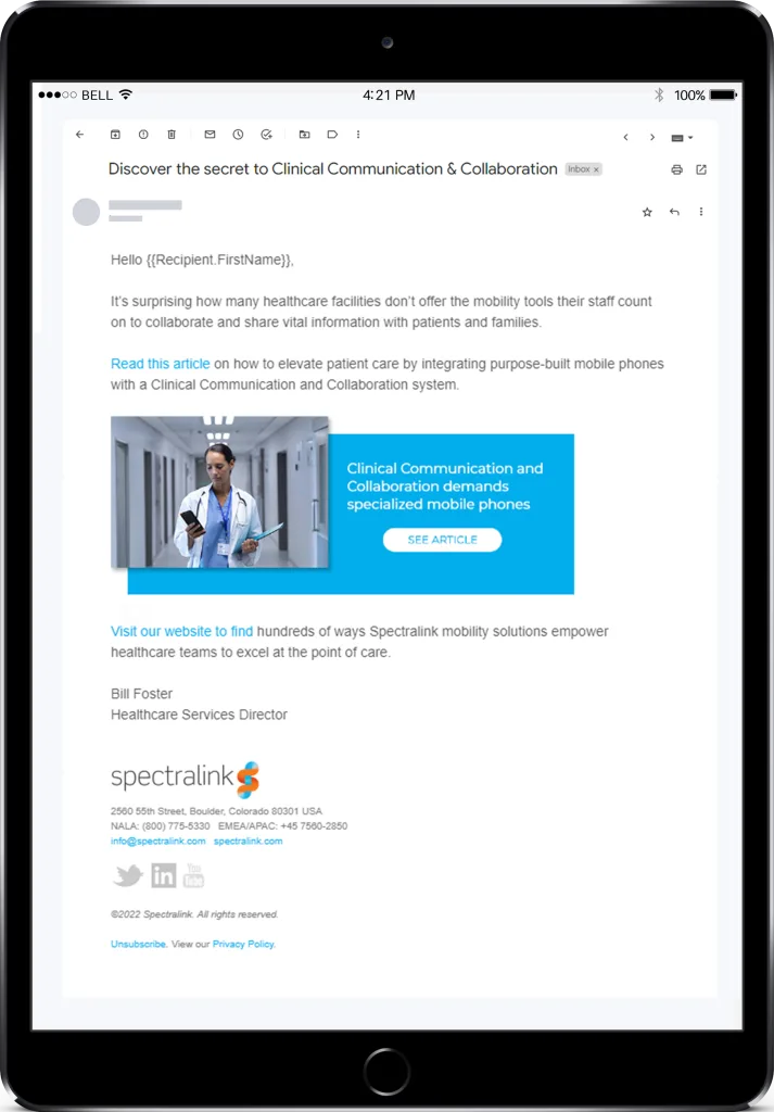 - Appealing imagery is important, but be aware that not every recipient can see it (e.g., Outlook users who don’t have images enabled)